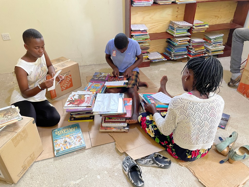 Our volunteers arrived in Uganda! After several years of planning online, we finally worked together in person. On Day 1 of work, we unpacked boxes of books and sorted through them so that we could finish processing them. Local volunteers helped us sort through the nonfiction books and label them accordingly.